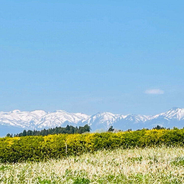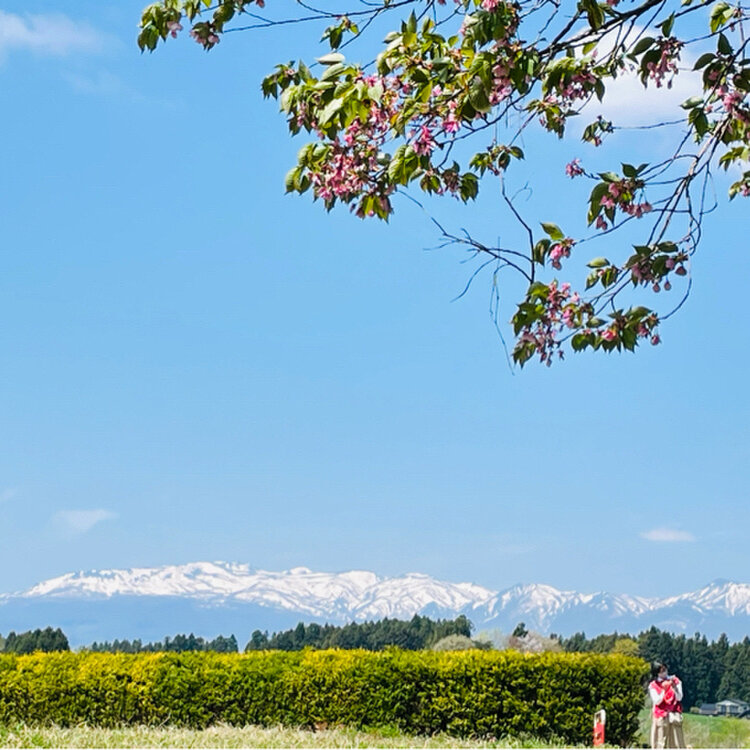 ここでまだ少し残っていた桜と雪山を🏔️🌸📸