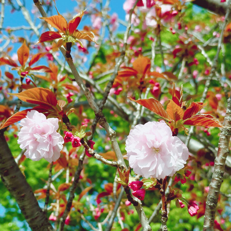 舎人公園𖤣𖥧𖥣𖡡𖥧𖤣⑤ 里桜 その2 桜は 里桜⋯普賢象かな? が1番の見頃でした 色合いといい 八重咲きといい なんて可愛らしい(∩>ω<∩) ぽわぽわで 大好き❤︎ 桜の花言葉は 「精神の美」「優美な女性」 里桜・八重桜の花言葉は 「豊かな教養」「しとやか」 だそうです なるほどなるほど そんな感じですね( ˙꒳˙ )フムフム… 2024.4.13 📸 舎人公園