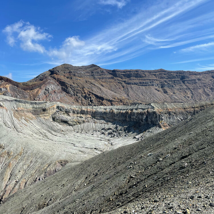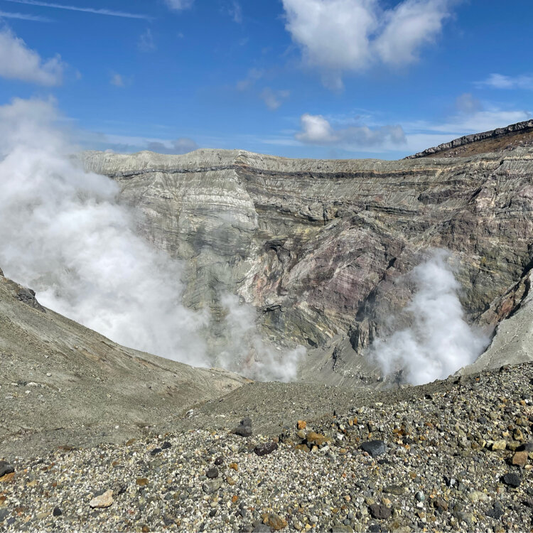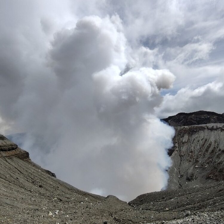 阿蘇五岳(根子岳・高岳・中岳・烏帽子岳・杵島岳)の中で、中岳は、世界で最も火山活動が活発な火口のひとつです🌋 中岳の直径は600m、深さは130m。周囲4キロの巨大な噴火口では、白い噴煙を上げる様子が見れて、山が生きてる〜と感じられ大迫力でした🌋 5枚目写真は噴石シェルターで、たくさんの数が設置されていて緊張感が増します🌋 #秋さんぽ #私のことりっぷ旅