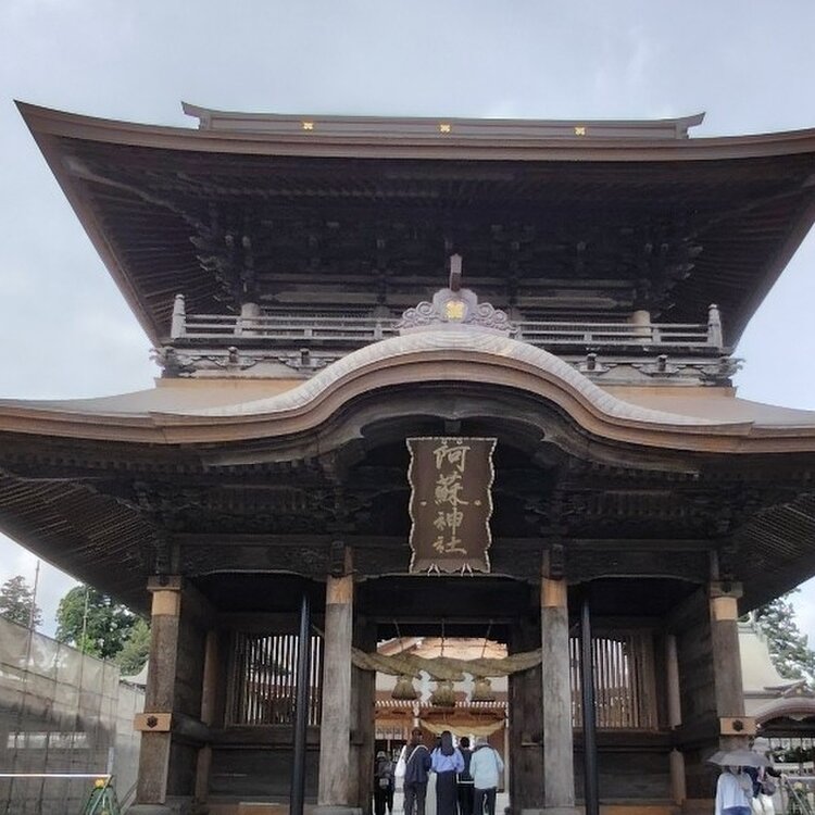 阿蘇の旅😆 高森から中岳火口を経由して、阿蘇神社から大観峰へ 桜門から境内に入ったよ🌸