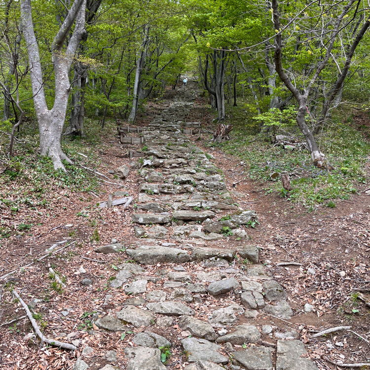 休憩場所はなく、手すりもない、舗装されていない石の階段、静まり返って人気がほぼない‥熊さん出ないよね?