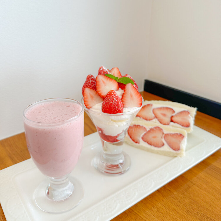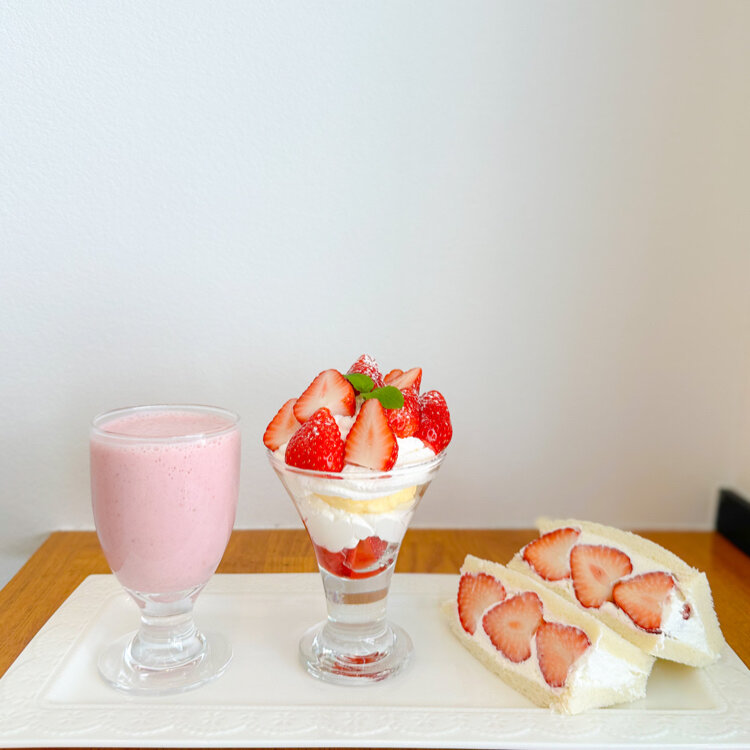 パフェは苺の他にクリーム、アイス、ジュレetc