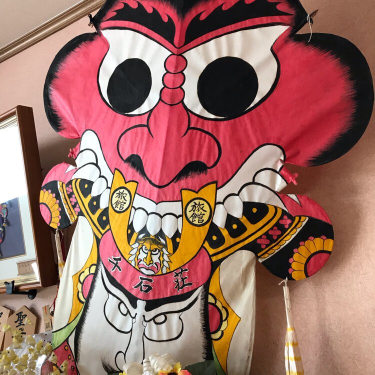 長崎県壱岐市 旅館 千石荘 お宿の玄関には、ばらもん凧が飾られています 朝食は、豆の味が濃い壱岐豆腐が美味しく、干物、卵かけご飯にした卵、定番ですが、どれも美味しい、美味しいと完食でした 宿の方のお気遣いで壱岐牛陶板焼きをひとつ出していただき、とろけるお肉も味わいました
