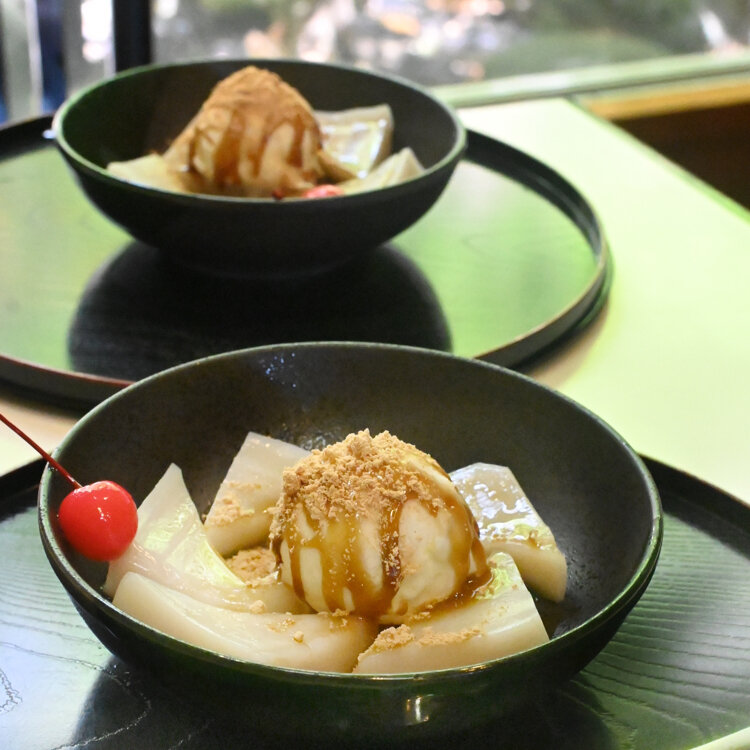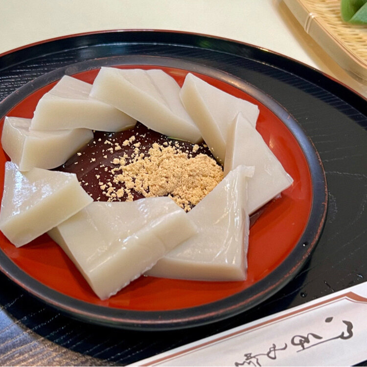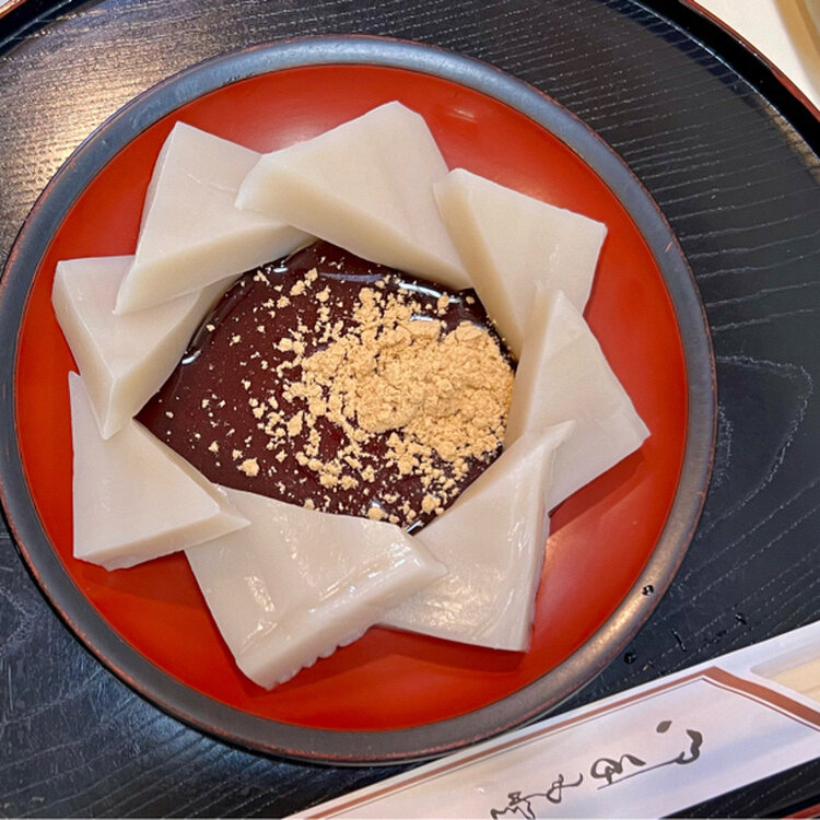 参拝前に久寿餅(くずもち)と麩まんじゅうで腹拵え(^人^)