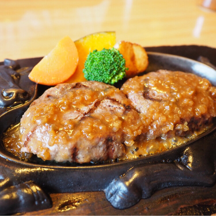 ハンバーグは熱々の鉄板の上でお店の方に仕上げていただき、