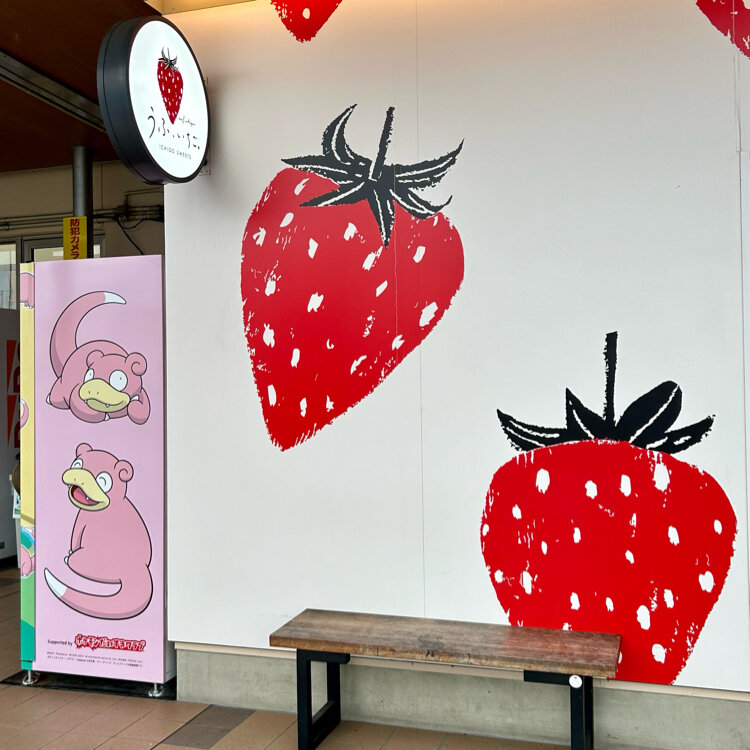 たくさんの人が食べていたパフェ、私達は「苺プリンパフェ•ミックス」を。苺とミルクのソフトクリームにはおいりと苺ちゃんチョコがちょこん、その下にはプリンが入っているパフェです。小さめでお腹いっぱいでも食べれる大きさです。お土産に苺大福、プリン、カヌレを買いました🍓苺好きにはたまらないお店です。後、ここにはたくさんのお土産が売られてて、欲しかった出汁も買えました。次行った時には、素敵ユーザーさんが食べてたヤドンのうどんを食べたいです。いつも前を通りながら寄ったことなかったことが悔やまれるほど、心奪われた道の駅でした🎵