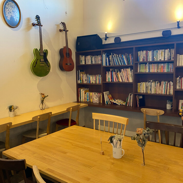 お店の中も本やアートがあり、