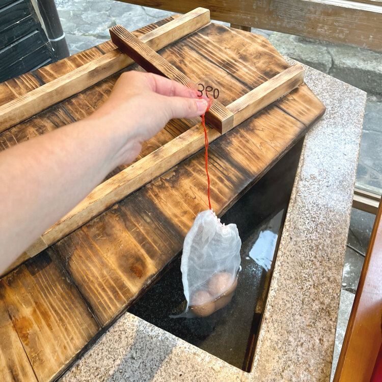 まずはサービスの温泉たまご作り🥚🥚🥚