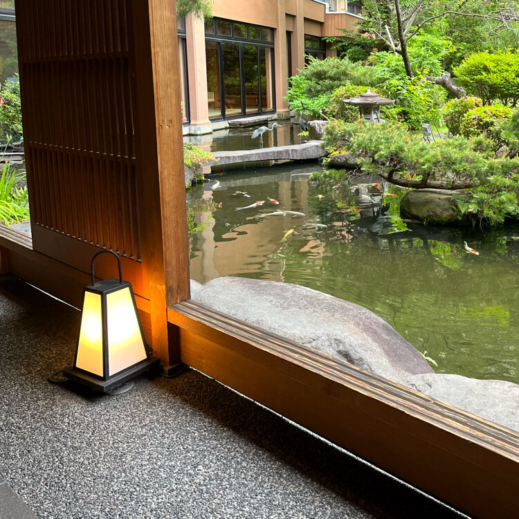 ロビーや温泉の入口の前には大きな将棋盤に駒が並べられていて、将棋を打つも良し👉