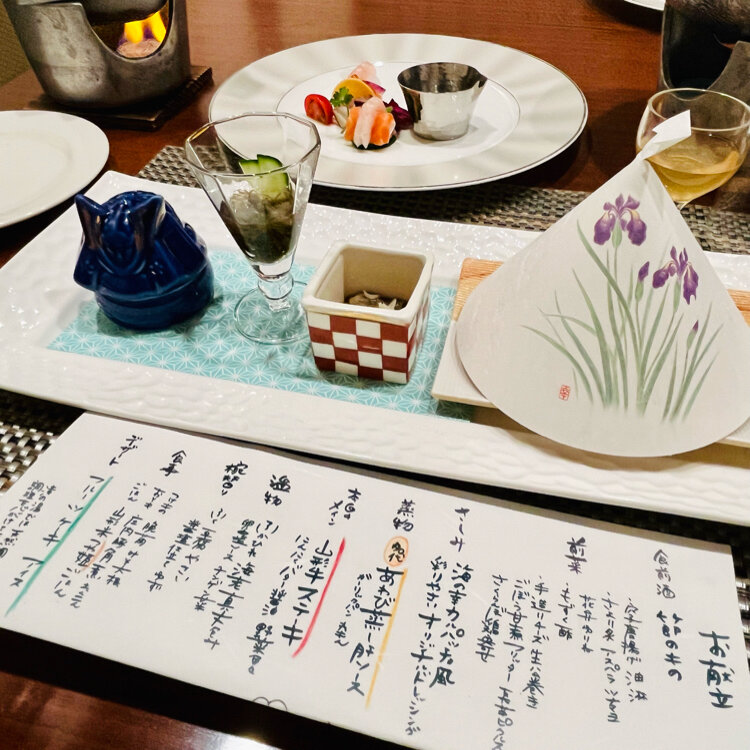 #山形#天童#天童温泉#ほほえみの宿滝の湯#温泉#温泉たまご#将棋#お庭の池には鯉がいっぱい#山形牛うまっ#6月になったらさくらんぼの時期で混むんだろうなぁ#夕食の前菜の飾りは母の愛犬の帽子になりました⁉️