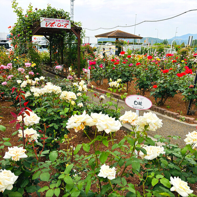*福山SA上り薔薇園* たくさんのバラが咲く福山SAへ。 地元の方もたくさん訪れる人気の場所です。 薔薇園は満開。 バラを眺めながら休憩されている方が 多かったです。 #私のことりっぷ旅 #福山 #福山SA #薔薇園 #ばらの街福山