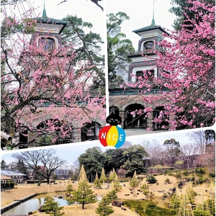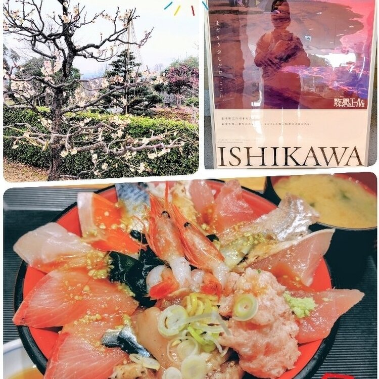 北陸応援の旅🏯金澤🐼旅して食べて泊まって応援 春一番🌸満開 尾山神社の寒紅梅 金澤🏯石垣修復作業はまだまだ☃️雪無しの玉泉院丸庭園 海鮮丼に海の幸を凝縮の旨さ🦐 まだもう少しだけここに そろそろ能登にどうぞ😽 #開運旅