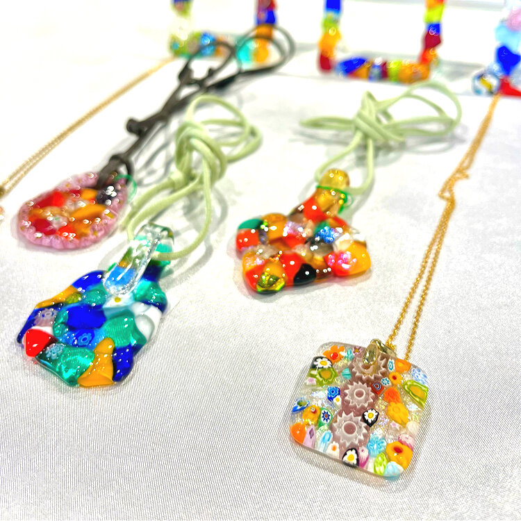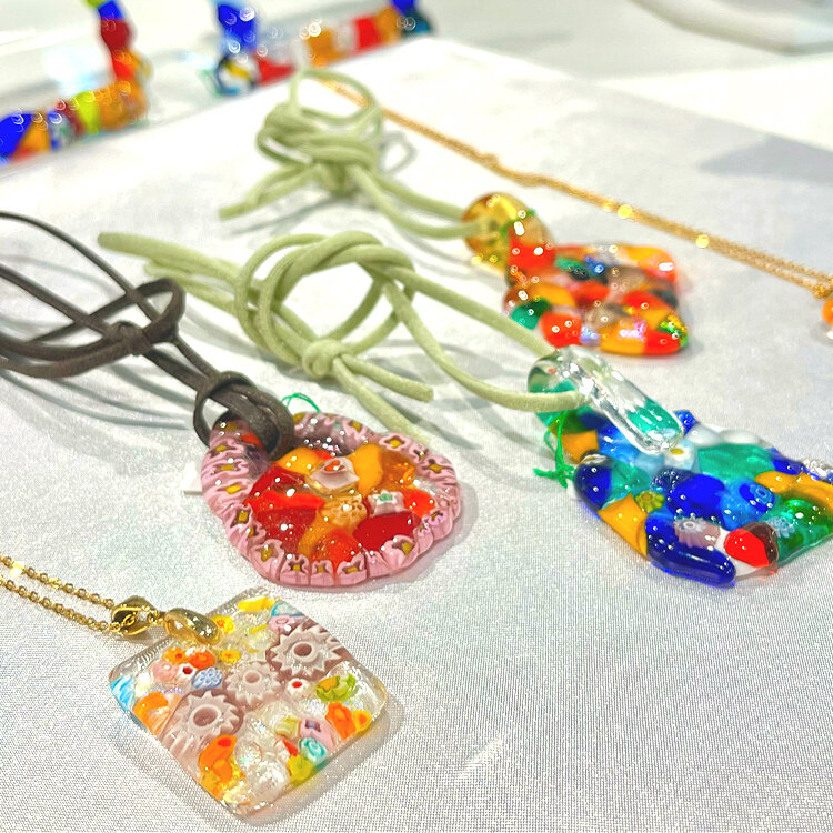 展示されているのは、主に ガラスアクセサリーや 七宝焼。