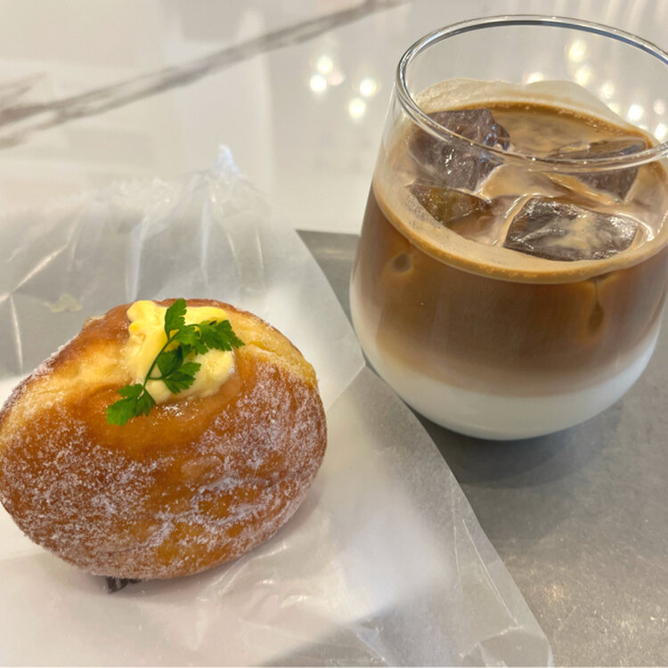 今日は新所沢の西口でもう一軒。 Qu'est-ce que c'est?(ケスクセ?) ももとマスカルポーネ、アイスカフェラテを注文ー😋 無知な私は、ブリオッシュ生ドーナツとは?っとなりましたが•••ふんわりとした生ドーナツね🤔✨ 新所沢には東口にも美味しいドーナツ屋さんがあるのよねー🍩💕