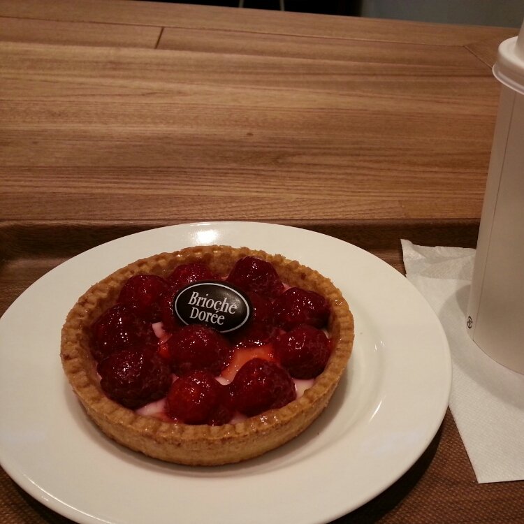 ラッピング待ちの間に小休憩。 大好きなラズベリーがたくさん乗っていて満足(*^^*) 店員さんが感じがよく、カフェラテも美味しかった♪ 楽しいひと休みになりました。 #ブリオッシュドーレ #BriocheDoree #秋葉原 #ヨドバシカメラすぐそこ #パン屋 #タルト