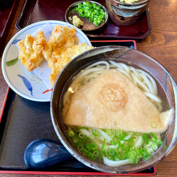 讃岐うどん特有のコシが有る麺とこだわりのつゆで、優しい甘さのお揚げさんも美味しかったです。