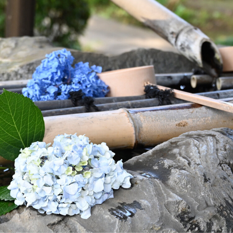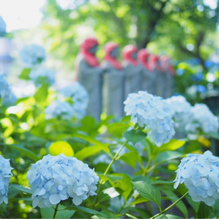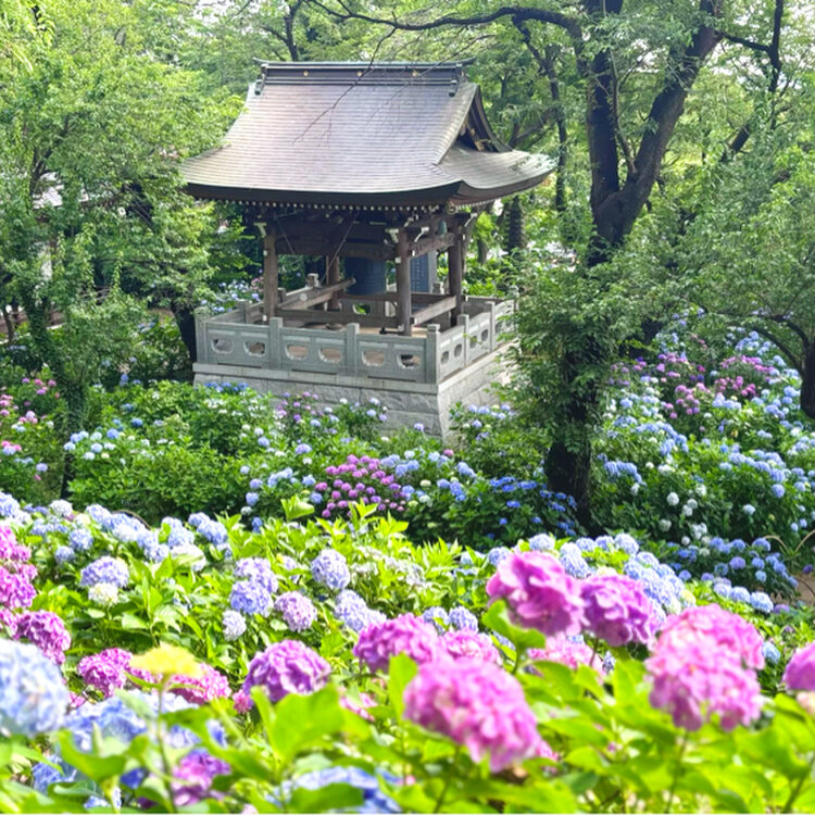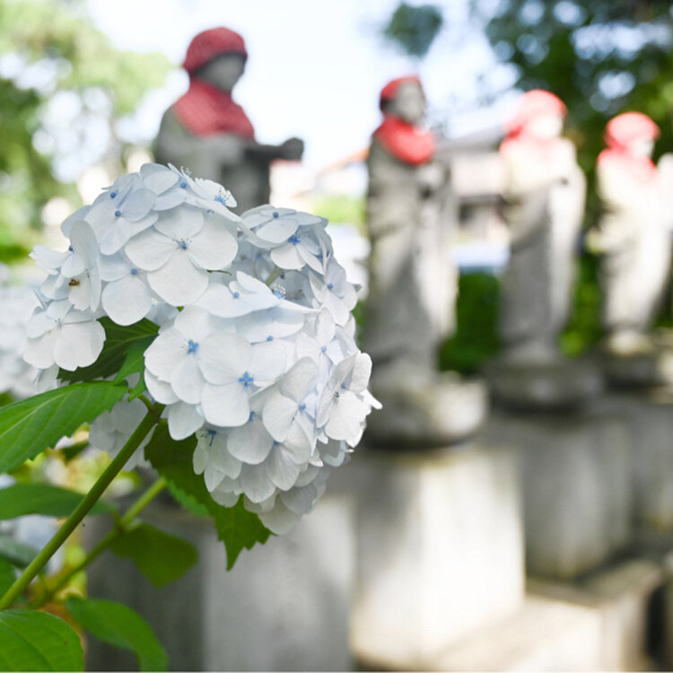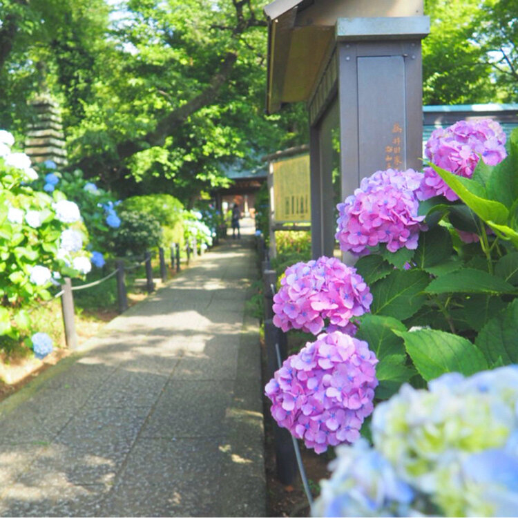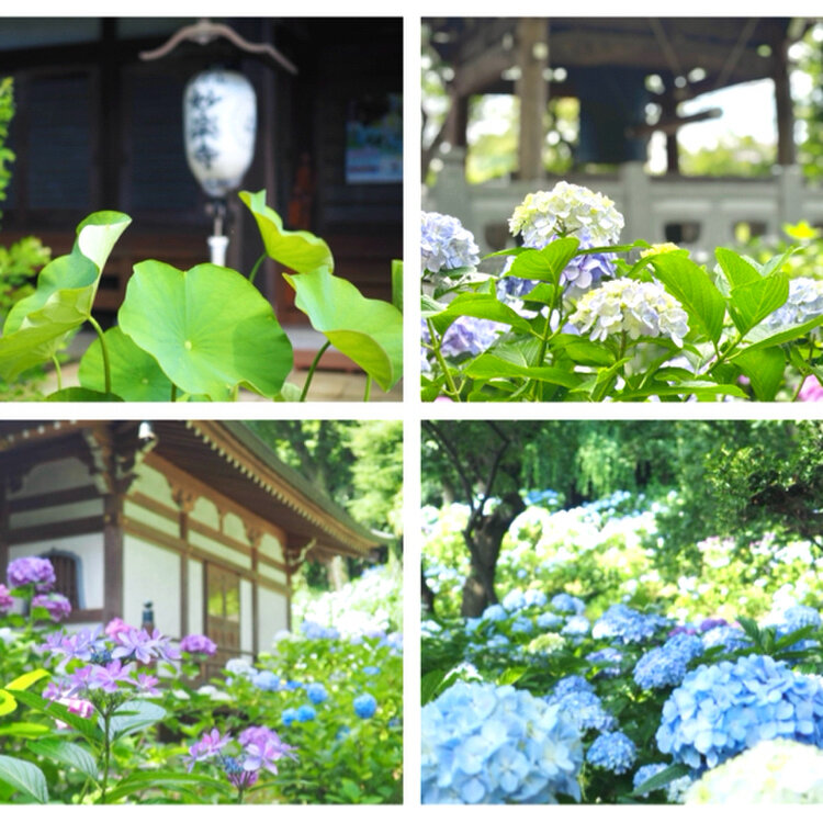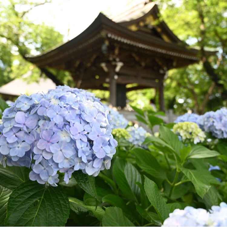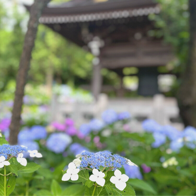 歴史あるお寺と美しい紫陽花、