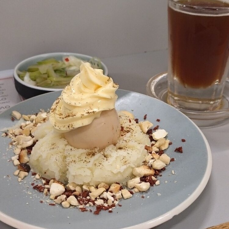ポテトサラダは半熟卵が乗っていてポテトと周りに散りばめられているナッツ類と一緒に食べるのが面白かったです✨