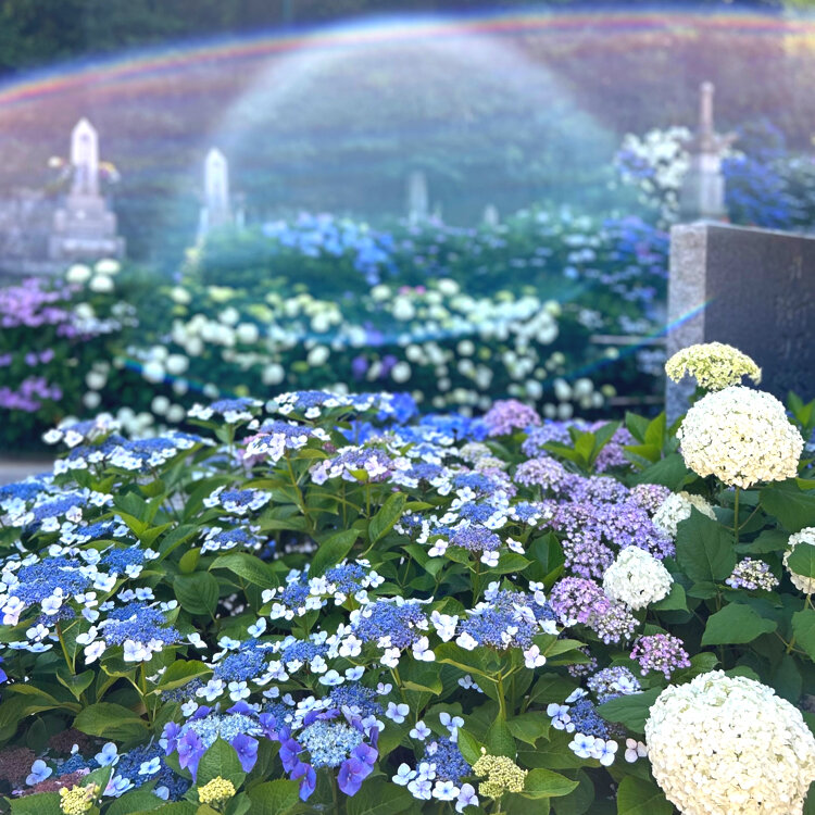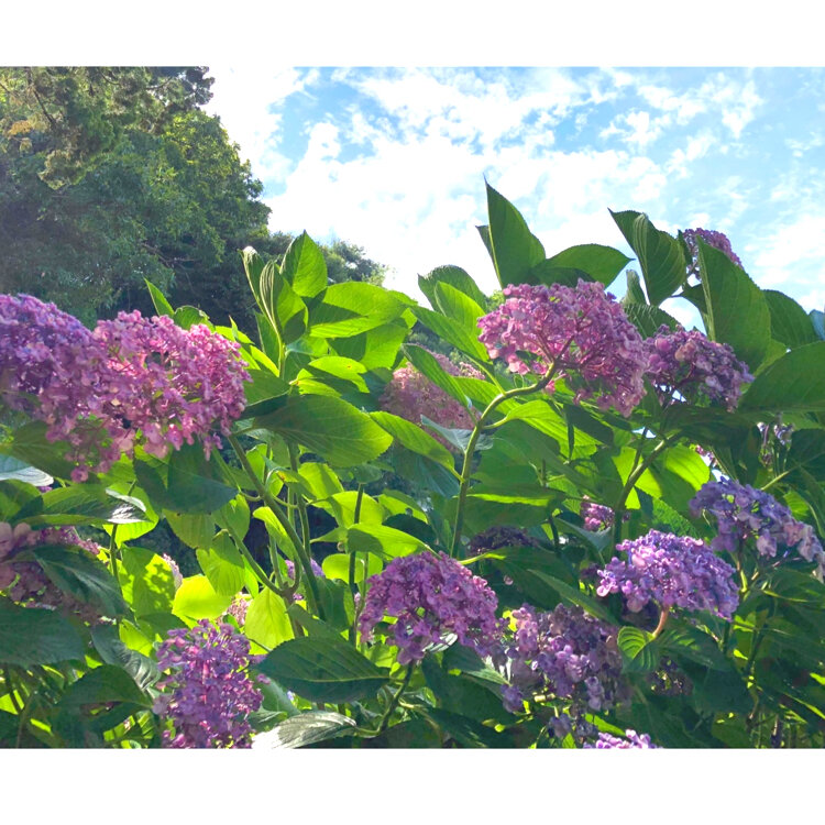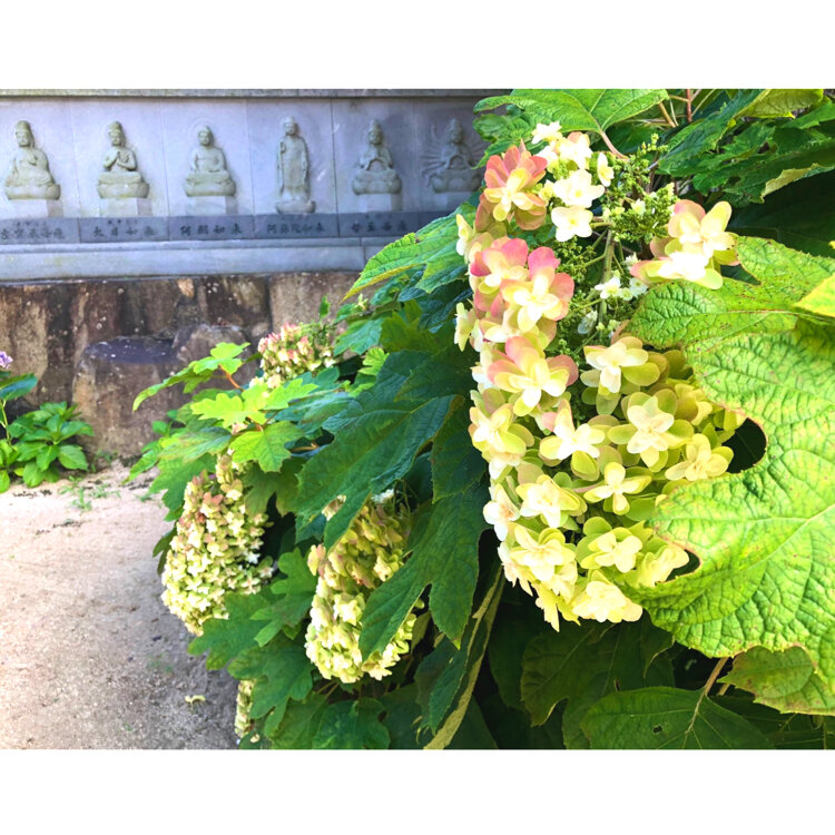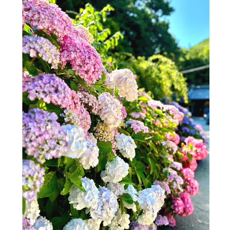 色合いがとても素敵で私には表せれない色合いだなぁ、綺麗だなぁって入口からテンション上がりまくりです↑色とりどりの紫陽花の花が境内を華やかに、それでいて厳かに、見学に来られていた人達はみんな笑顔でそれぞれの楽しみ方をされていました✨お昼もすぎた3時、写真を後で見ると太陽の光の加減であちこちで光の道が出来てて綺麗でした✨まだまだ蕾もあったので、今頃はもっと華やかになっているんでしょうね🌼🌸
