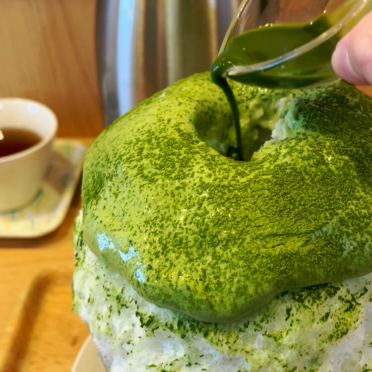 お久しぶりの投稿。 アイス日記🍨 以前にも投稿したお店へ。 期間ごとに色んなかき氷🍧が頂けるため お気に入りにお店😊 頂いたのは 抹茶クリームが乗っていて さらに抹茶を掛けて頂く、抹茶尽くしのかき氷🍧 提供終了間近に行き、何とか間に合いました! (今は終了しています。) 抹茶好きには堪らないかき氷でした😌