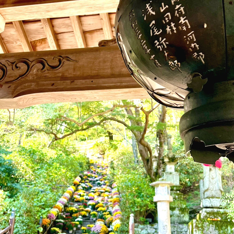 (奈良旅)長谷寺 ふうふう💦と回廊の石段を登り ふと見上げると鮮やかな色が目に飛び込んできました✨ 思ってもいなかった華やかな風景に「うわぁ。。」と心の声が漏れてしまった😃 この菊の回廊、歩くことも出来るんですよ! 長谷寺は石段多いしとちょっと躊躇してたんですが来て良かった💕 #秋の装い #菊の回廊
