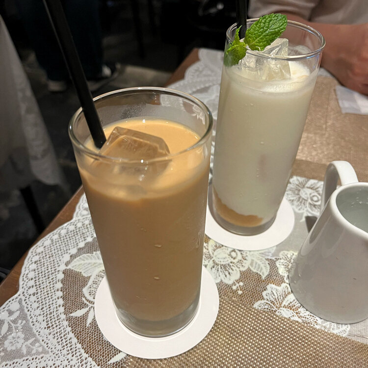 ドリンクはマサラチャイとミックスジュースラッシーを。