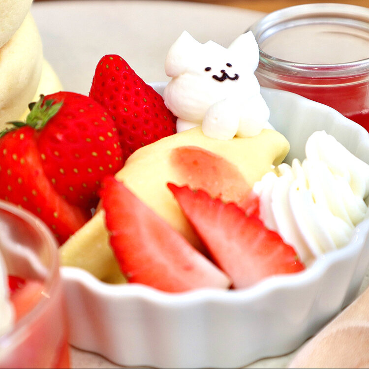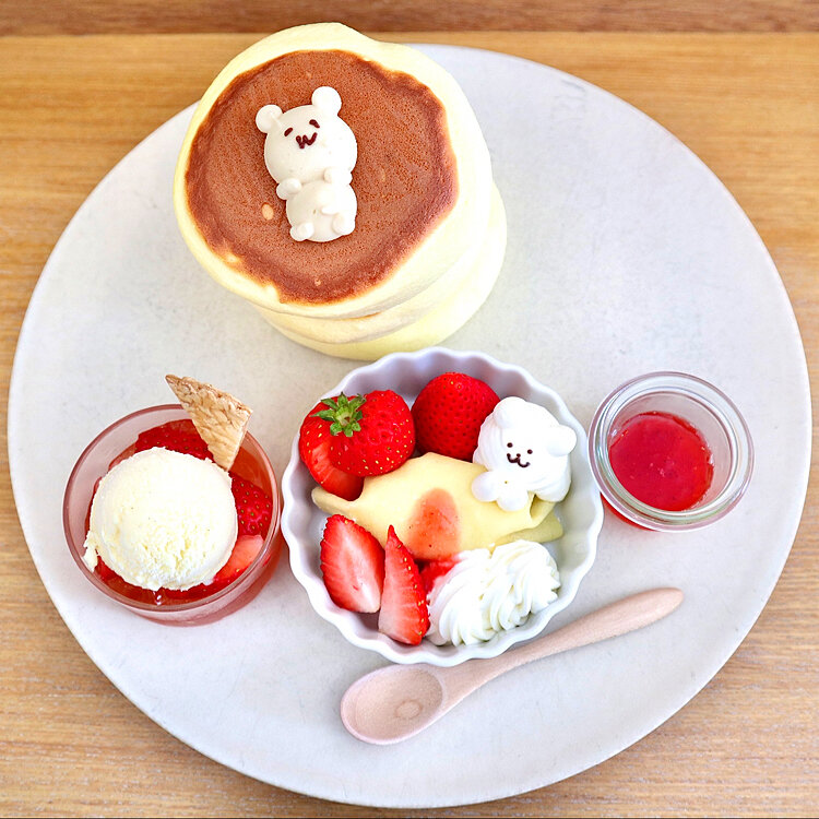 ちょこんとパンケーキの上にのっているのがかわいくてなかなか崩せず…🥲