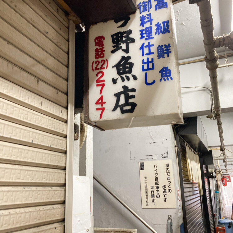 東一市場のこの魚屋さんの近くによく居るということで、ウロウロ探し回りましたが居ません💦