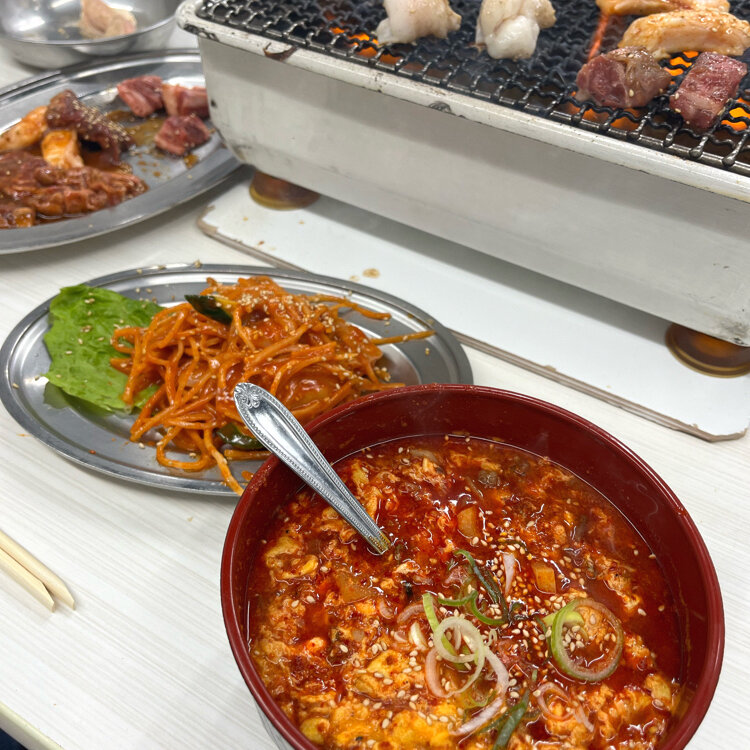 #大阪 #鶴橋#焼肉#焼肉ホルモン空#空#ホルモン#イカフェもうまい#ユッケジャンスープちょっと辛めご飯追加してクッパにしちゃった