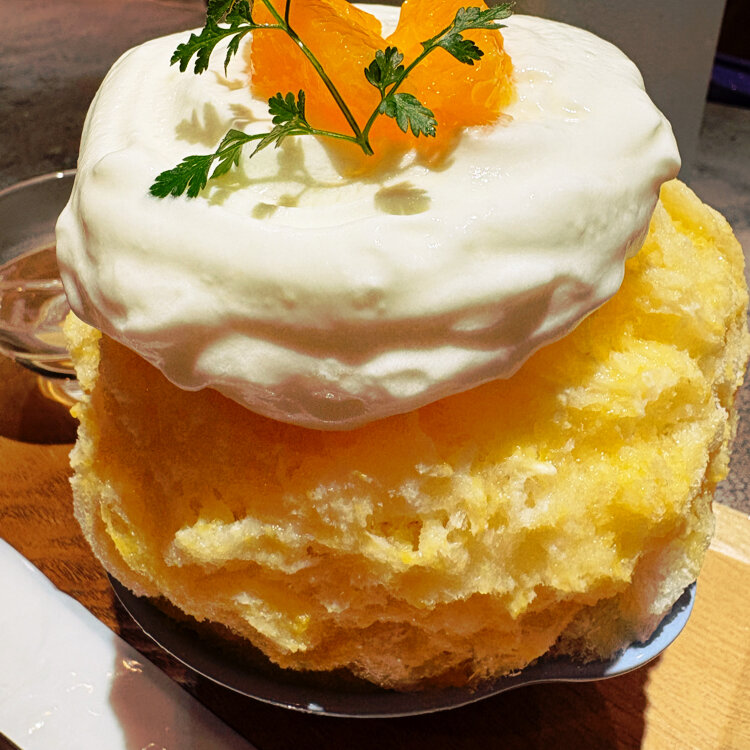 お茶と大和橘のかき氷 一年の終わりに大好きな大和橘が食べられて ラッキーです #ほうせき箱