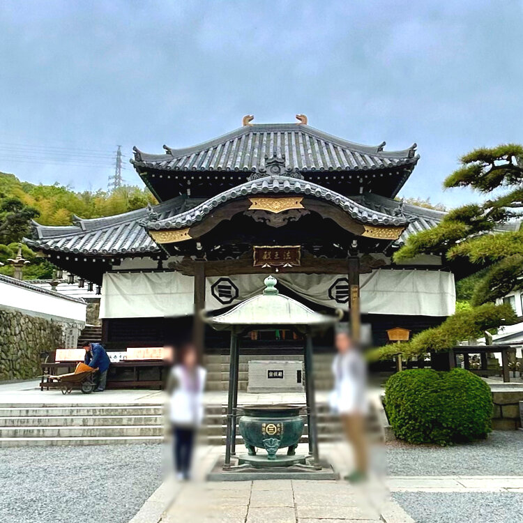 宇多津町を見渡す青野山の麓にあり、地元では「厄除けうだつ大師」と親しまれている郷照寺。もぅ、2日目の16時過ぎ、お寺の方はお手入れをはじめられていました。本堂前には立派な天井絵があり、綺麗な庭園、池もありました。そして、ガチャガチャを見つけ、恵比寿様がやってきてくれました✨