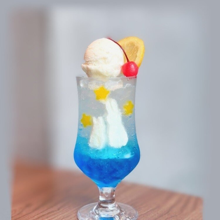 友人は、紫陽花の花弁がグラスの表面やアイスの上に散らばせられたシュワシュワクリームソーダを選びました。