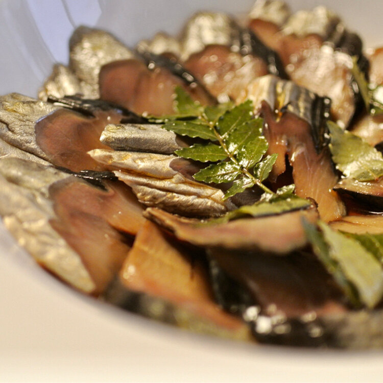 ミガキニシンに山椒の葉を被せて醤油 酒 酢で味付けしたもの。