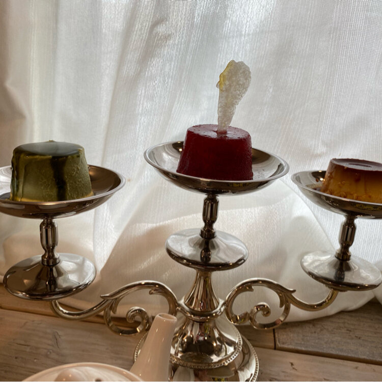 注文したのは左から蜂蜜ミルクプリン(450円)・季節限定桃プリン(680円)・カスタードプリン(380円)・アッサム(800円)と、まあまあお値段します🤣2枚目は友達が注文した抹茶プリン・苺ゼリー・カスタードプリン🍮オーナーは紅茶に詳しく持ってこられた時に紅茶・プリンの説明があります。「紅茶は少しずつ注いでゆっくり味わってほしい」というオーナーからの説明通り、少しずつゆっくり味わいました😊