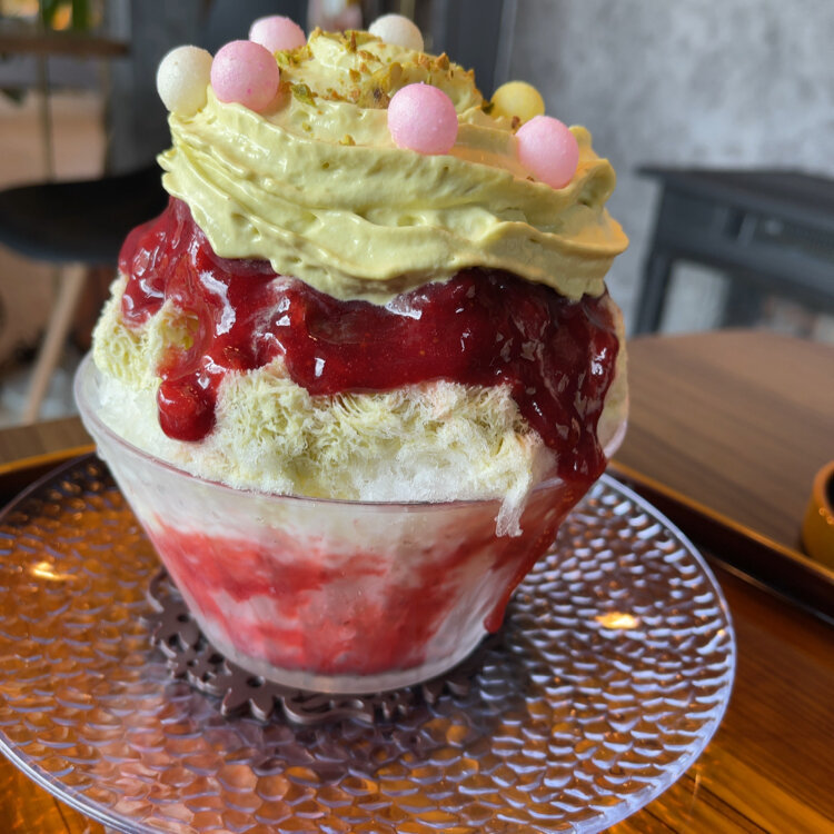 こんばんは🌙 かき氷が素敵です ピスタチオとストロベリー🍓 すごく美味しそうです😍