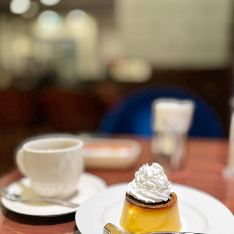 昔と違ってよくなりました。禁煙。 昭和のプリンを注文。トッピングにクリームを。 かたいですが昔ながらのプリンを楽しめます。セットはコーヒー。 あまりにも暑かったので休んでいたらうとうと。昔に戻った夢をみてしまいました。