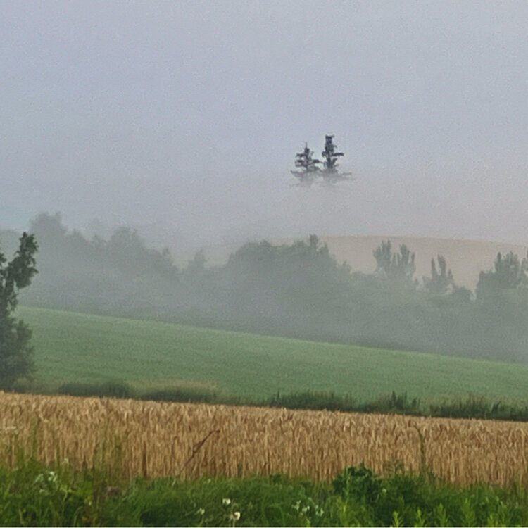 ③朝陽に向かって…逆光ですが山並みもふんわりと綺麗でした