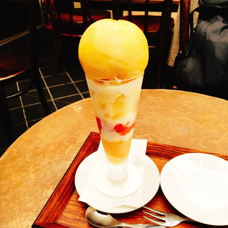 一目惚れした桃のパフェを注文します🍑⋆౨ৎ゚⟡.