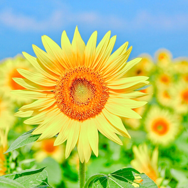 あみんさん 元気いっぱい かわいいひまわりですね🌻 みんなこっちを見てますね😊