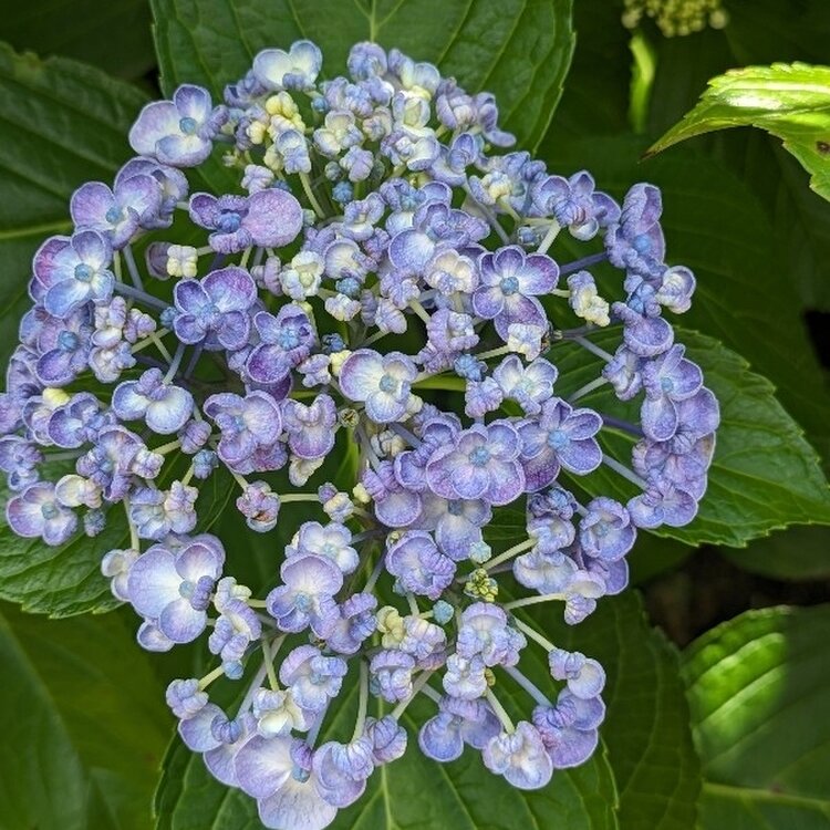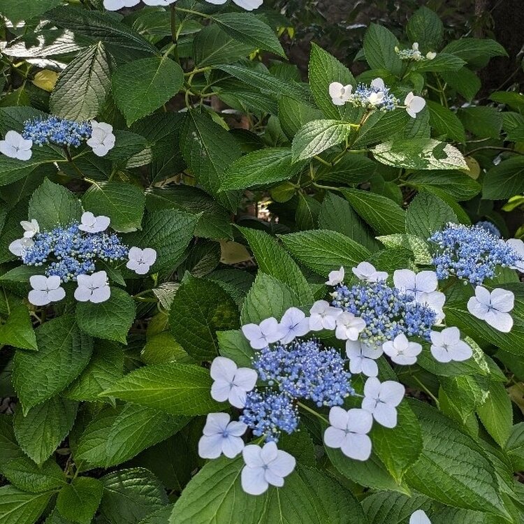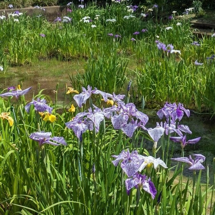 おかめ❓️ お多福❓️ くるくる紫陽花さん 花菖蒲と紫陽花のコンビネーションも素敵です💕