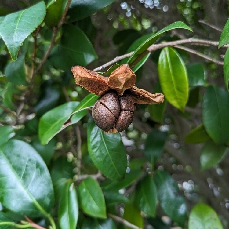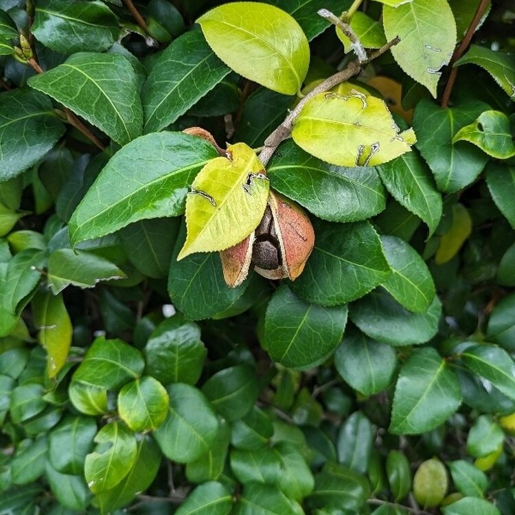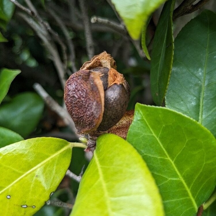 椿かな⁉️ 実が弾けそうです😃