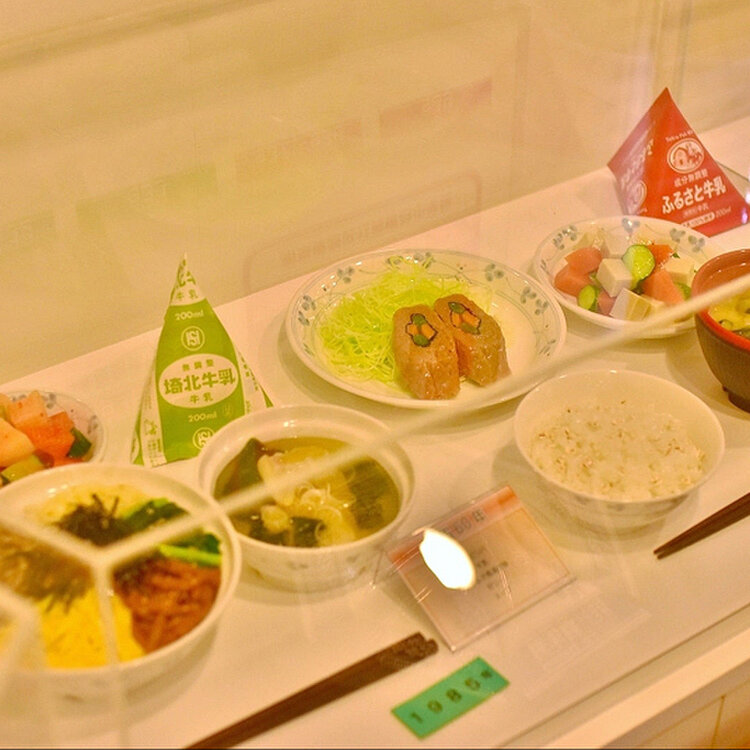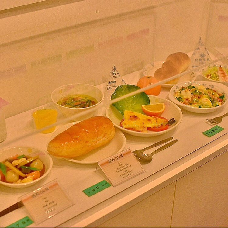 食品サンプルやパネル展示、什器等の実物の展示で分かりやすく紹介されていました。