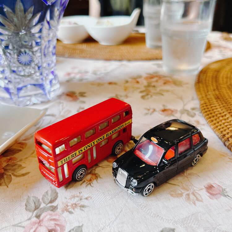 イギリスへ新婚旅行へ行ってきた友人からのプレゼント!ミニチュアバスとタクシー可愛い😍