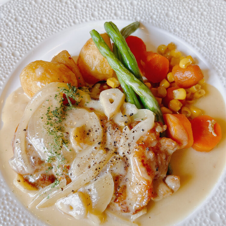 クリーム煮だけでなく冷製トマトスープや前菜などいっぱいあって満腹でした🙌