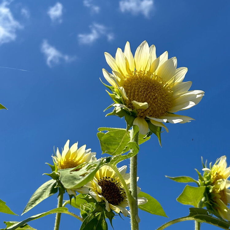 まめことりっぷさん 今日も一日お疲れ様でしたっ☺️ 毎日暑いです〜🥵青い空に映えますねぇ🌻 この時期はみなさんひまわり投稿が多いですが、私の🌻にお付き合いありがとうございます🎵👍