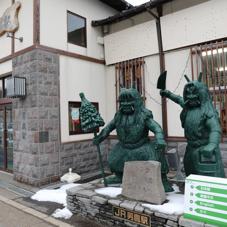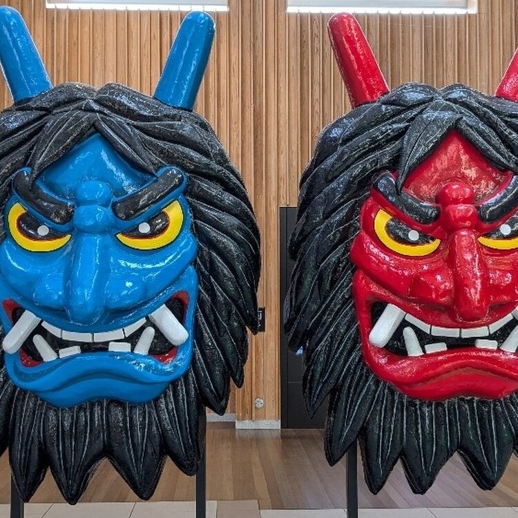 秋田旅行① 秋田・男鹿行ってきました!! 秋田駅に着くと赤と青のなまはげがお迎えしてくれます。男鹿線の発車時間まで1時間ほど。 名産の稲庭うどんをいただきました。 コシがあり、ツルツルしていて美味しくいただきました。 1時間ほどかけて、やっと男鹿駅に到着!長い旅でした。電車内にトイレがあり、いざというときは、安心だと感じました。 観光地巡りの投稿は次回へ