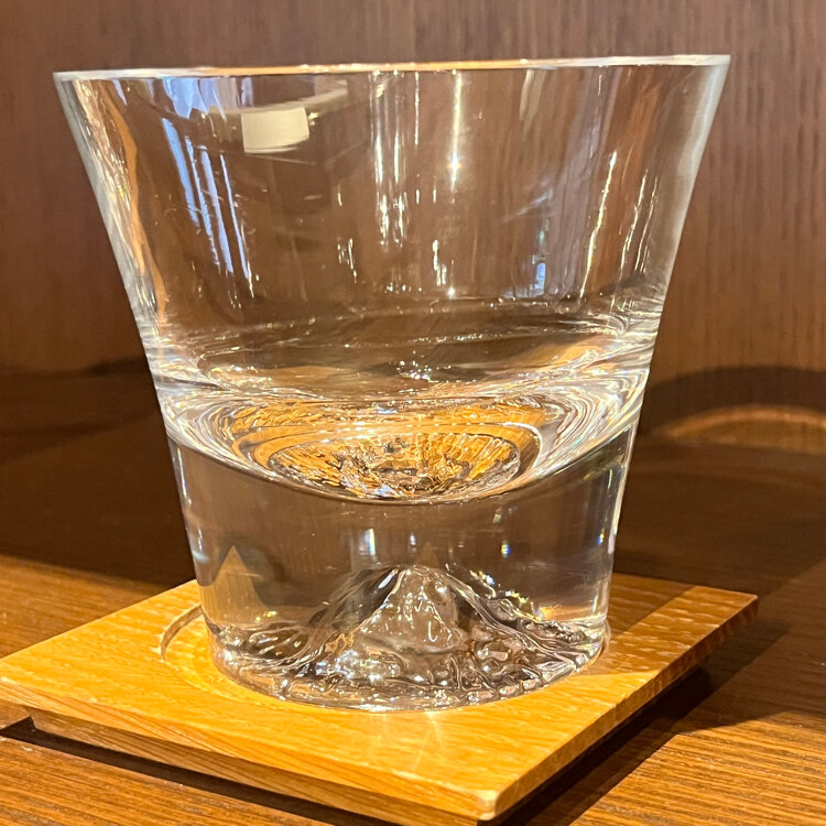 グラスの底の山は“開聞岳”👍