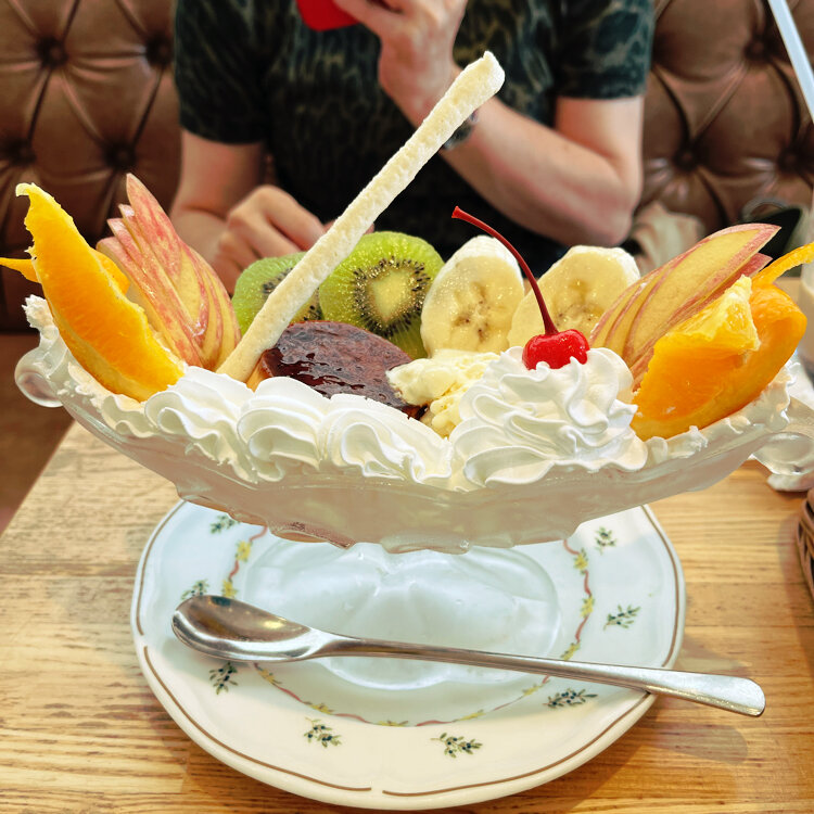 昔ながらのばかりですが、昔ながらのレトロなプリンアラモード🍮を食べよう‼️てことで。 プリン🍮と言えばパステルだよね💕と行ってきました。 お子様連れもいっぱい、優しい感じの店内の雰囲気✨✨で、プリンアラモード💕 やっぱりパステルのプリンは美味しい😋 果物もたっぷり、大好きな🍒も王道感があっていいですね‼️ お隣のお子様たちもプリンアラモードでした‼️