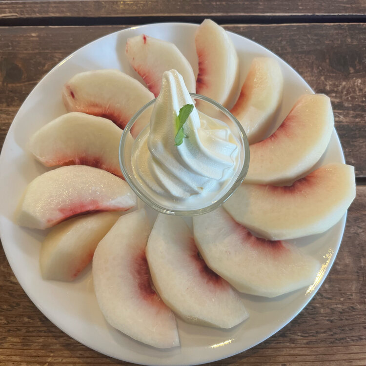 今だけ! 山梨県産冷やし桃&塩アイス 憧れの円盤スタイル🍑🍑🍑 モモは硬めでした〜