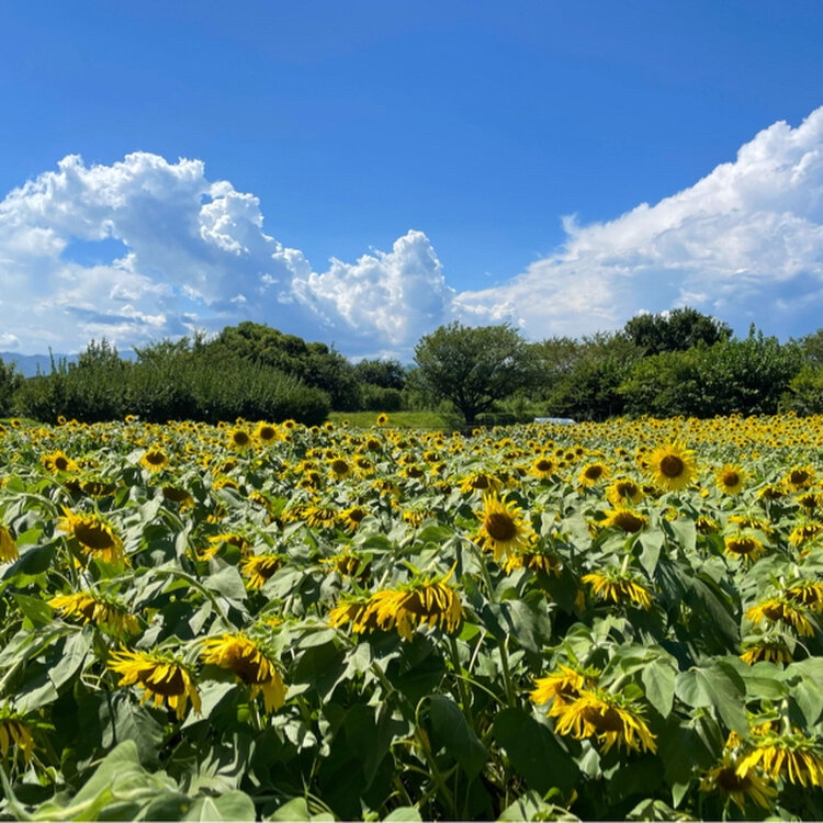 (ひまわり畑って周りに日陰が無いから綺麗に
